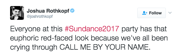 "CALL ME BY YOUR NAME" HAS SUNDANCE (AND ME) IN TEARS
